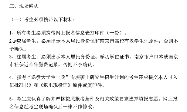 東南大學2020考研現場確認時間:11月7日至11月10日另附現場確認所需材料