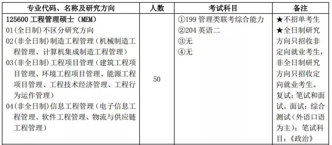 2019年工程管理碩士(MEM)招生信息