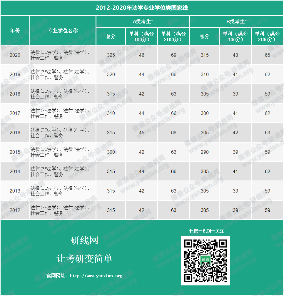 法學的考試科目一般為政治、英語和兩門專業課,具體考試初試科目查看報考學校公布的碩士專業目錄即可了解。分數構成為政治滿分100分,英語滿分100分,專業課一滿分150分,專業課二滿分150分,總分為500分。
