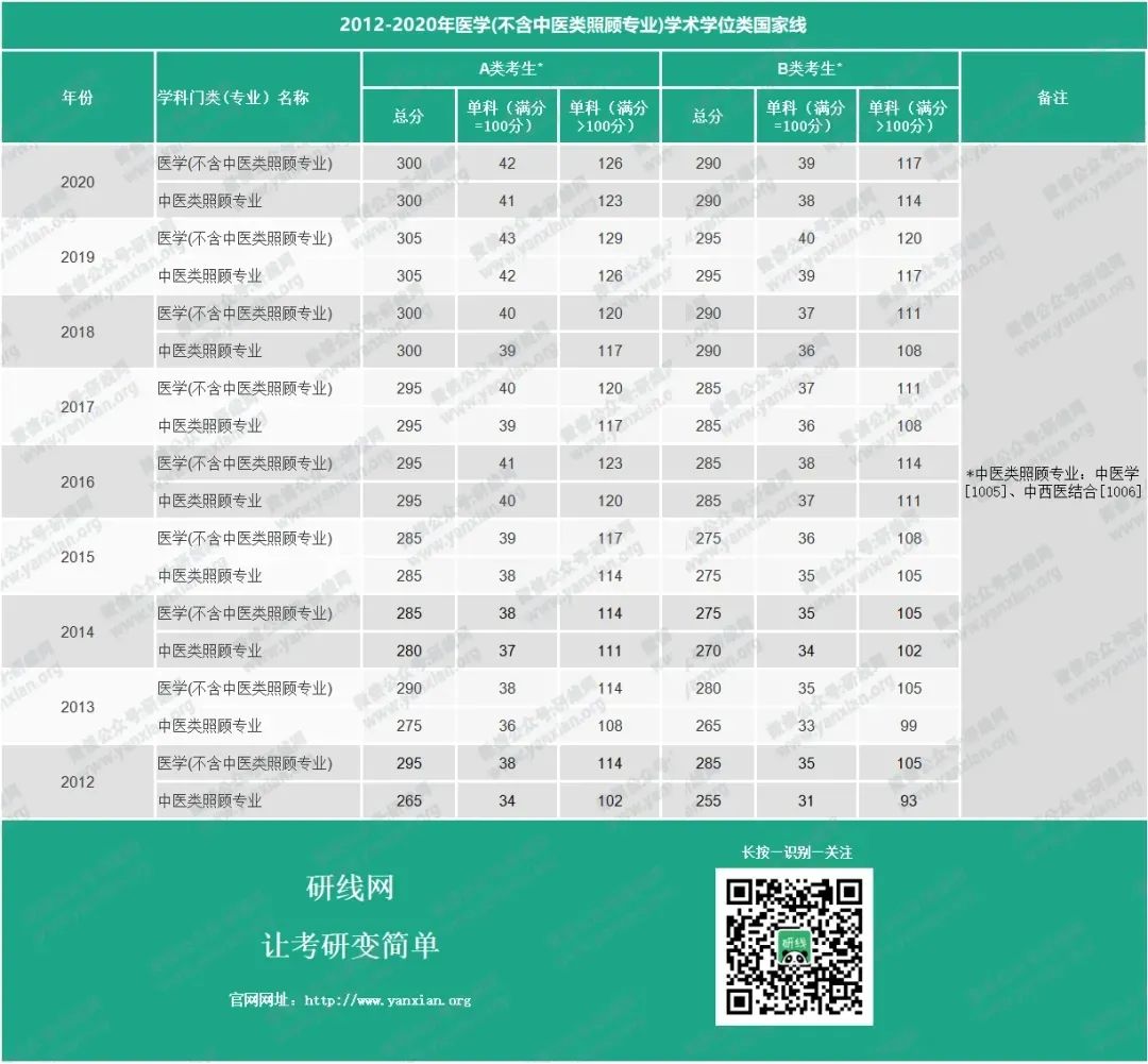 2012-2020年醫學專業學位類國家線: