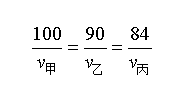 還是那個(gè)原則,路程、速度、時(shí)間都安排上。第一段,甲到達(dá)終點(diǎn)時(shí),乙距終點(diǎn)還差10米,丙距終點(diǎn)還差16米。意思就是:同樣時(shí)間,甲跑100米,乙90米,丙84米。根據(jù)時(shí)間相等的等量關(guān)系,可得: