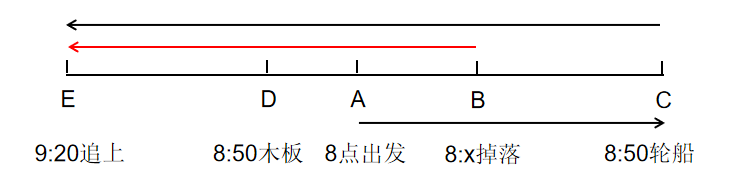 中途船上一塊木板落入水中,直到8點(diǎn)50分,