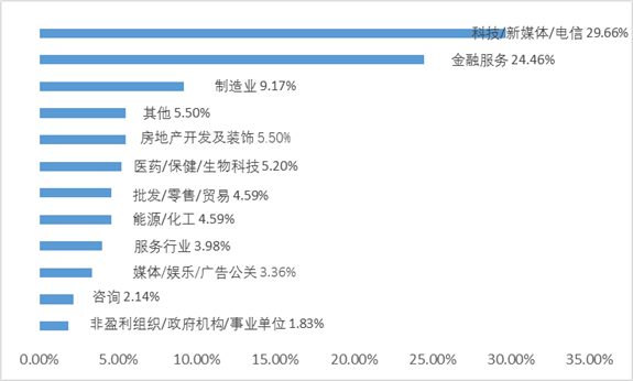 從入學(xué)前的行業(yè)分類來看,科技、新媒體、電信等新興行業(yè)和金融行業(yè)占比較高,制造業(yè)、房地產(chǎn)、醫(yī)藥等緊隨其后,商學(xué)院招收學(xué)生的行業(yè)背景、職能背景并不單一,而是注重其多元化的背景,因此,申請人對于行業(yè)、職能不要過于緊張!
