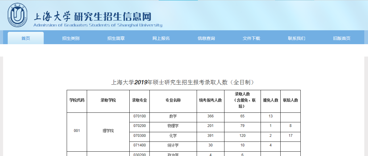 報錄比(報錄情況)是擇校不可缺少的指標之一,今天小編整理了“上海大學2019年碩士研究生招生報考錄取人數(全日制)”,希望能幫助到大家!