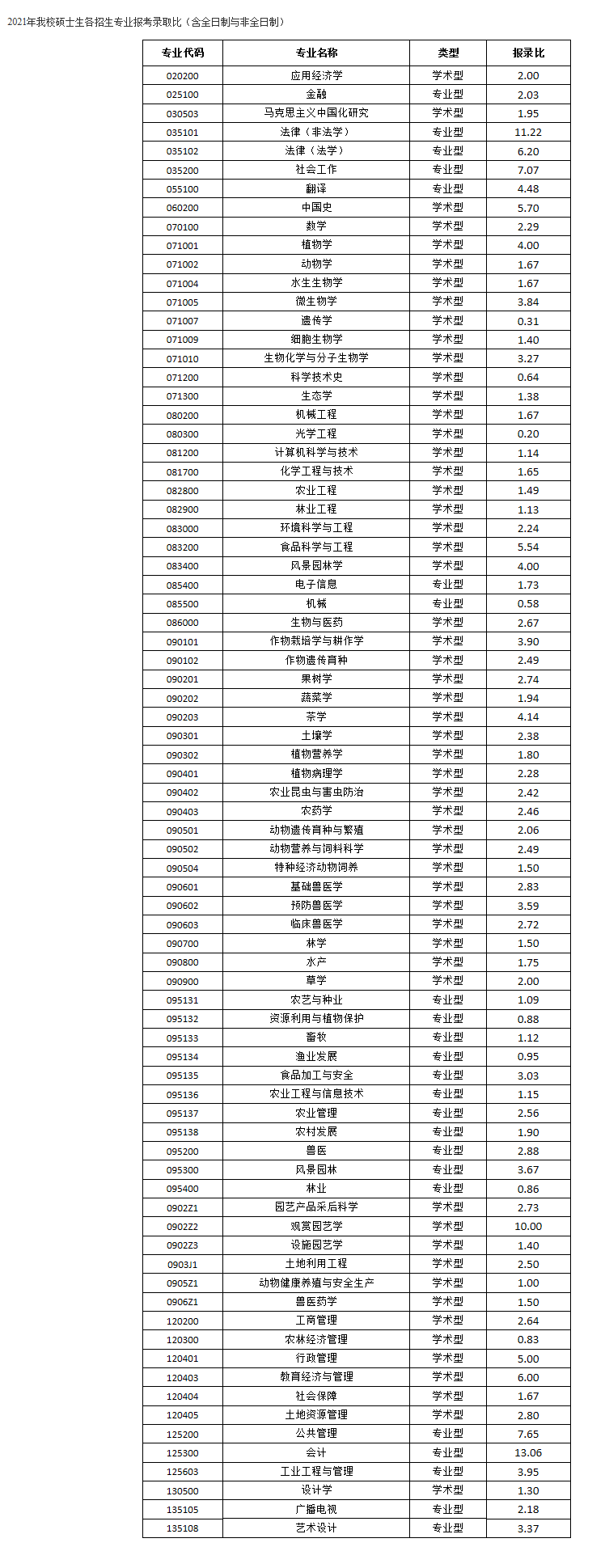 考研報錄比:華南農業大學2021年碩士研究生入學考試報錄比”全部內容,祝您考研成功!