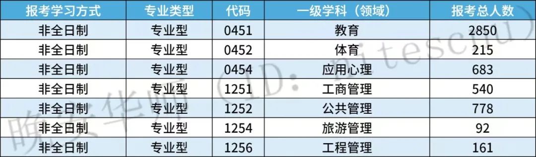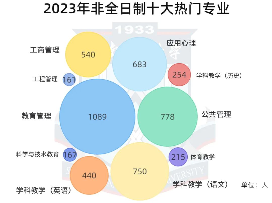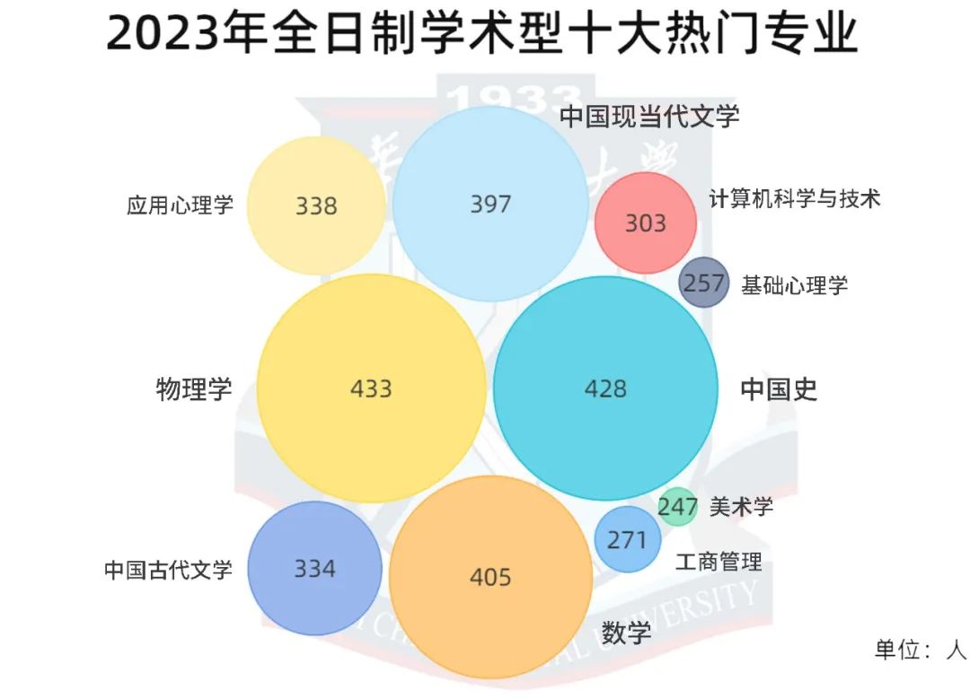 2023年,報(bào)考華師全日制一級(jí)學(xué)科(領(lǐng)域)的總?cè)藬?shù)為23876人,學(xué)術(shù)型的報(bào)考人數(shù)為8839人,專業(yè)型的報(bào)考人數(shù)為20356人。其中,有7個(gè)全日制一級(jí)學(xué)科(領(lǐng)域)報(bào)考人數(shù)超過(guò)800人:教育(專業(yè)型)報(bào)考人數(shù)高達(dá)8093人,電子信息(專業(yè)型)報(bào)考人數(shù)為1737人,中國(guó)語(yǔ)言文學(xué)(學(xué)術(shù)型)報(bào)考人數(shù)為1187人,應(yīng)用心理(專業(yè)型)報(bào)考人數(shù)為1097人,藝術(shù)(專業(yè)型)報(bào)考人數(shù)為879人,心理學(xué)(學(xué)術(shù)型)報(bào)考人數(shù)為869人,教育學(xué)(學(xué)術(shù)型)報(bào)考人數(shù)為858人。
