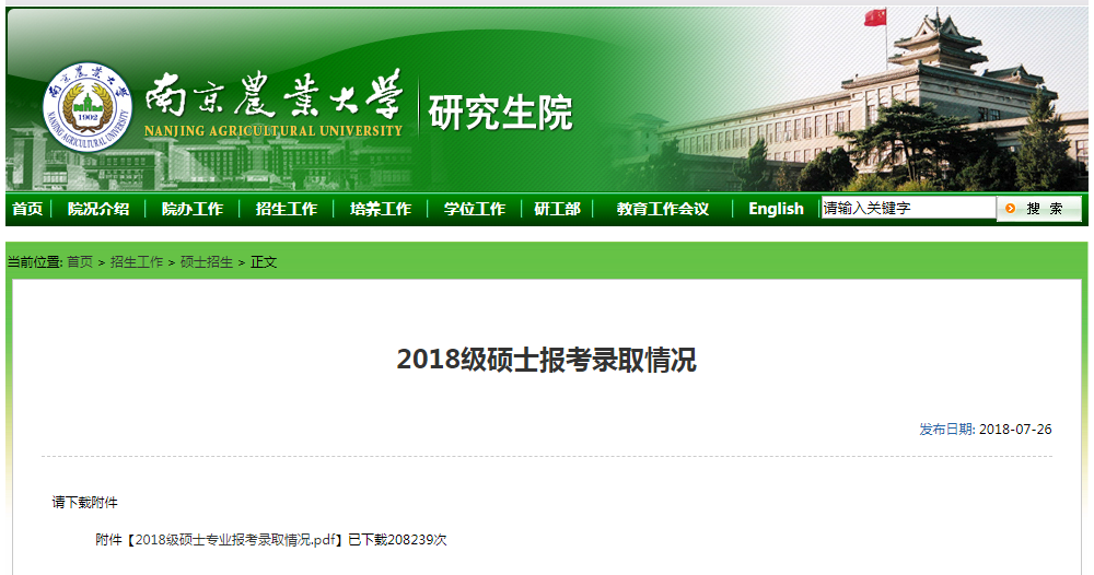 南京農(nóng)業(yè)大學(xué)2018級(jí)碩士報(bào)考錄取情況