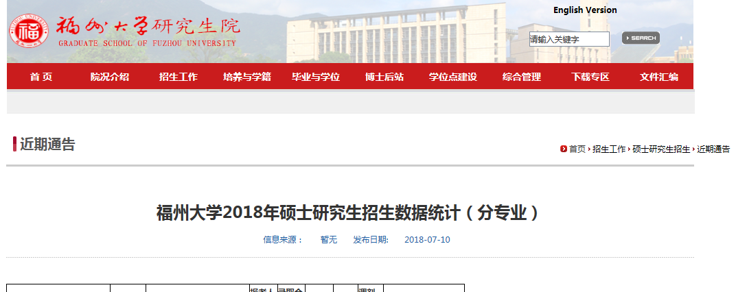 以上就是“福州大學2018年碩士研究生招生數據統計(分專業)”的全部內容!祝你考研成功!