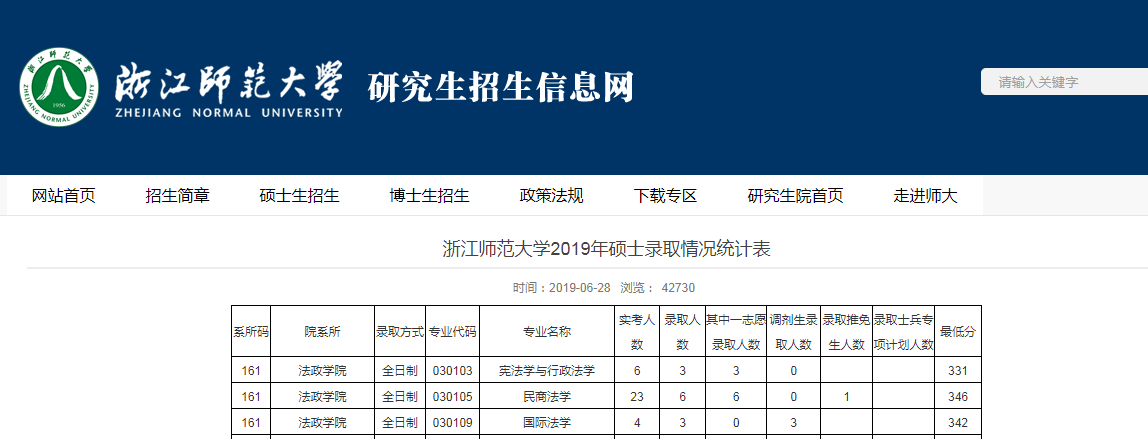 【點擊查看】浙江師范大學2019年碩士錄取情況統計表