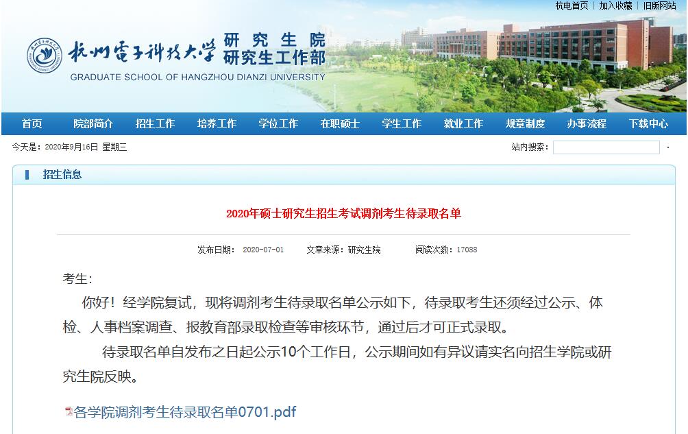 點擊查看:杭州電子科技大學2020年碩士研究生調劑考生待錄取名單