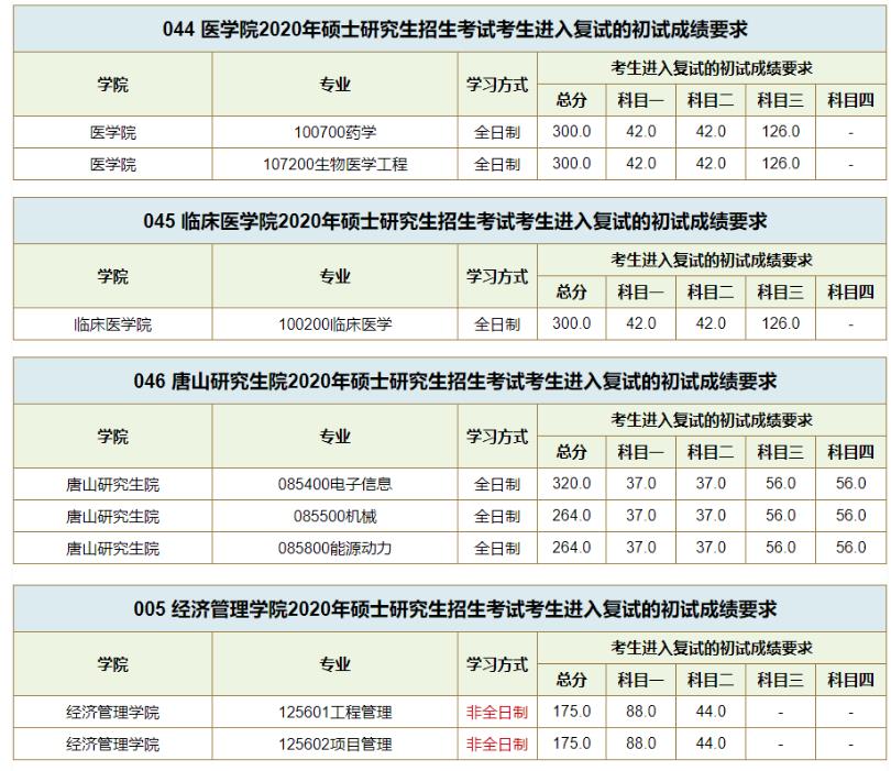 根據教育部有關文件精神,結合我校實際情況,經學校和各招生單位研究生招生工作領導小組審定,我校2020年碩士研究生招生考試各專業考生進入復試的初試成績要求如下表(陸續更新),請關注本網站發布的最新信息。