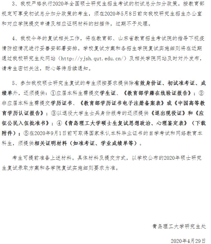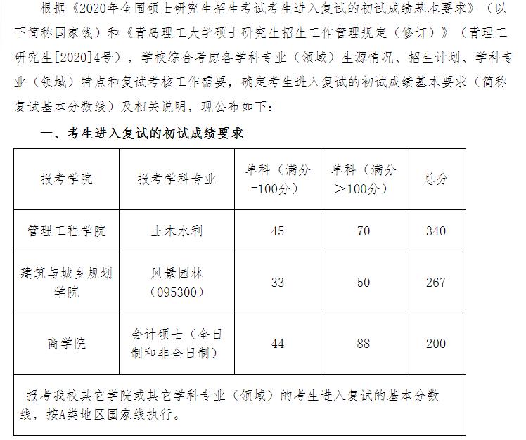 分?jǐn)?shù)線,青島理工大學(xué)也公布了2020年碩士研究生招生復(fù)試
