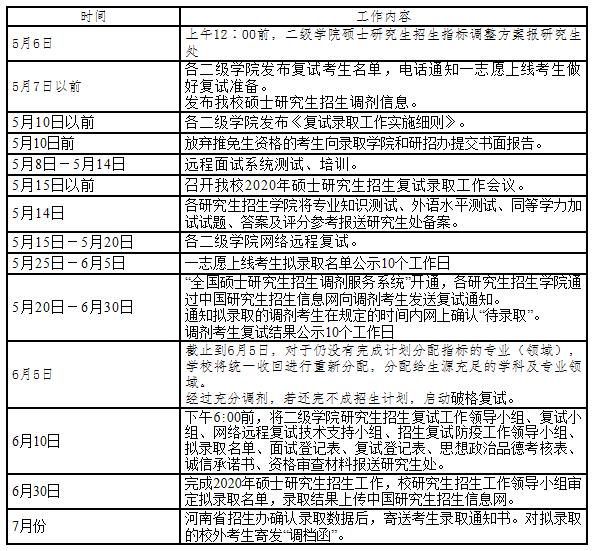 為貫徹落實習(xí)近平總書記關(guān)于統(tǒng)籌推進(jìn)新冠肺炎疫情防控和經(jīng)濟(jì)社會發(fā)展工作的重要講話和重要指示批示精神,根據(jù)教育部及河南省教育廳工作要求,在確保安全性、公平性和科學(xué)性的基礎(chǔ)上,穩(wěn)妥做好我校2020年碩士研究生復(fù)試錄取工作。結(jié)合我校實際,制定本方案。