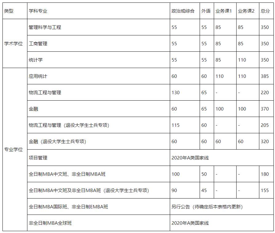 現將2020年碩士研究生招生復試基本分數線與有關事項通知如下:達到管理學院基本分數線的考生,可以參加管理學院組織的復試。