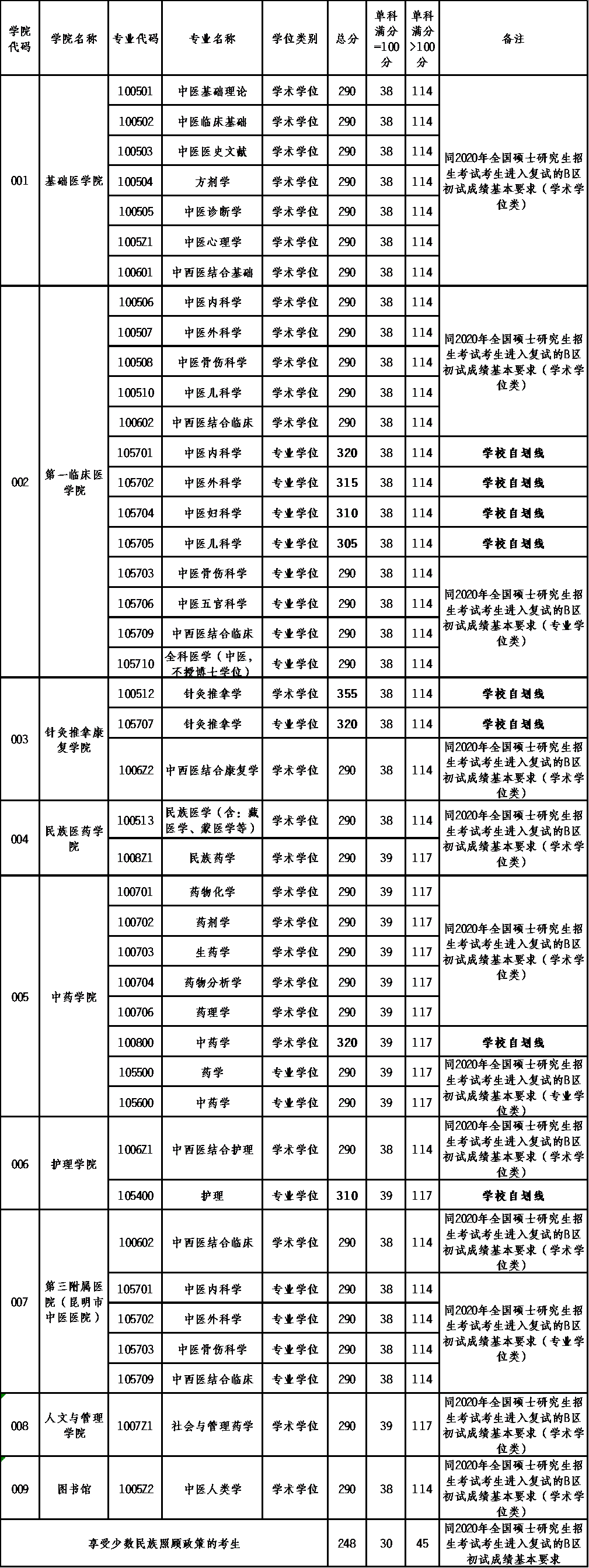 以上就是有關(guān)“2020考研分數(shù)線:云南中醫(yī)藥大學2020年全國碩士研究生招生考試考生進入復試初試成績基本要求及復試相關(guān)工作安排”的全部內(nèi)容了,進入復試的同學一定要好好準備,在國家線徘徊的同學抓緊準備調(diào)劑了!