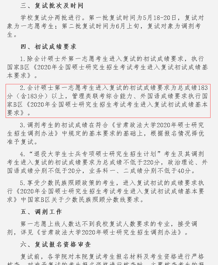 以上就是有關“2020考研分數線:2020年甘肅政法大學碩士研究生復試錄取辦法”的全部內容了,進入復試的同學一定要好好準備,在國家線徘徊的同學抓緊準備調劑了!