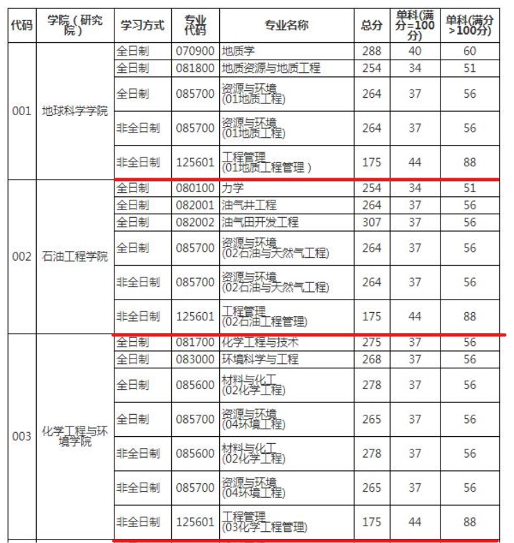 中國石油大學(北京)2020年MEM(工程管理)復試基本分數線:175/88/44