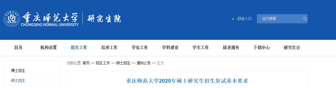 以上就是有關“2020考研分數線:重慶師范大學2020年碩士研究生招生復試基本要求 ”的全部內容了,進入復試的同學一定要好好準備,在國家線徘徊的同學抓緊準備調劑了!