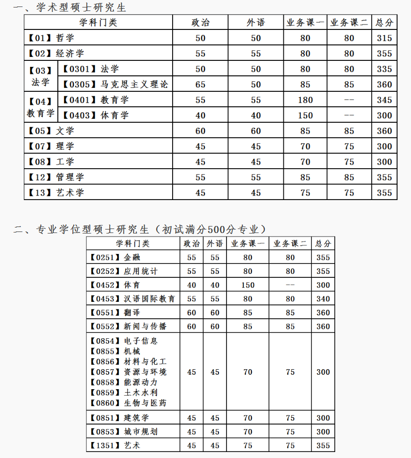 根據(jù)教育部相關(guān)文件精神,結(jié)合我校實(shí)際情況,經(jīng)學(xué)校招生工作領(lǐng)導(dǎo)小組討論研究決定,我校2021年全國碩士研究生招生考試考生進(jìn)入復(fù)試的初試成績基本要求如下: