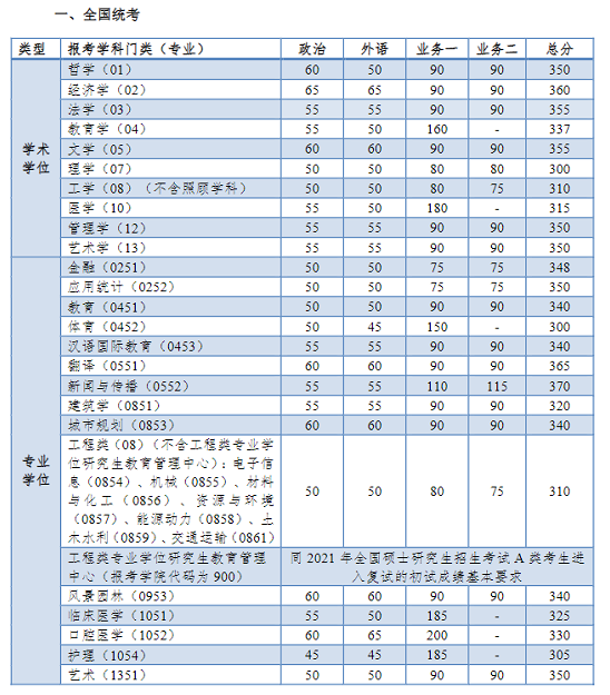 根據教育部有關文件精神,結合學校報考情況,學校招生領導小組經會議研究決定,同濟大學2021年全國碩士研究生招生考試進入復試的初試成績基本要求如下: