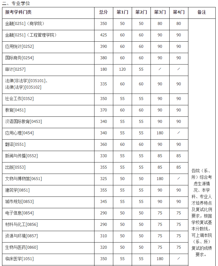 (6)招生院系可在學(xué)校公布的復(fù)試基本分?jǐn)?shù)線基礎(chǔ)上,結(jié)合生源及招生計(jì)劃自主確定復(fù)試分?jǐn)?shù)線,請考生關(guān)注各學(xué)院發(fā)布的復(fù)試方案。