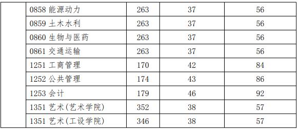 1.各專業考生,包括第一志愿報考我校的考生及調劑考生,須達到下列初試成績上線要求(見表 1),方具備我校復試資格。