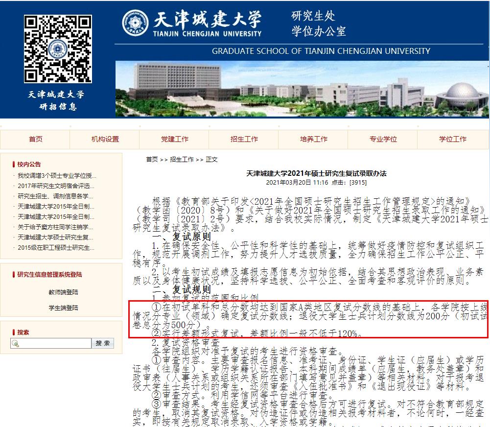 以上就是小編整理的“2021考研分數線:天津城建大學復試分數線_復試時間_國家線公布!"的全部內容。想了解更多考研相關信息,請持續關注本網站。