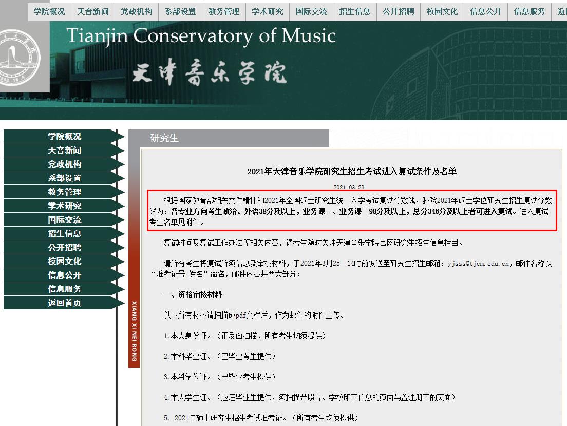以上就是小編整理的“2021考研分數線:天津音樂學院復試分數線_復試時間_國家線公布!"的全部內容。想了解更多考研相關信息,請持續關注本網站。