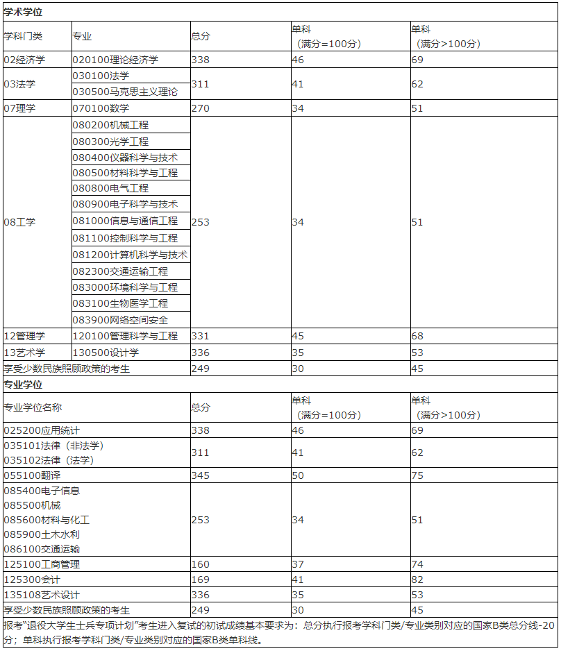現將我校2021年碩士研究生招生復試分數線公布如下: