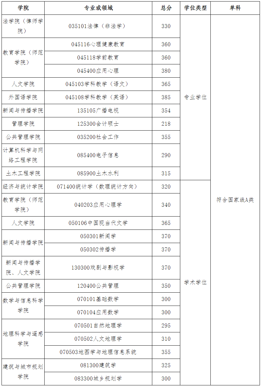 經我校研究生招生工作領導小組決定,確定我校2021年碩士研究生部分專業復試分數線如下: