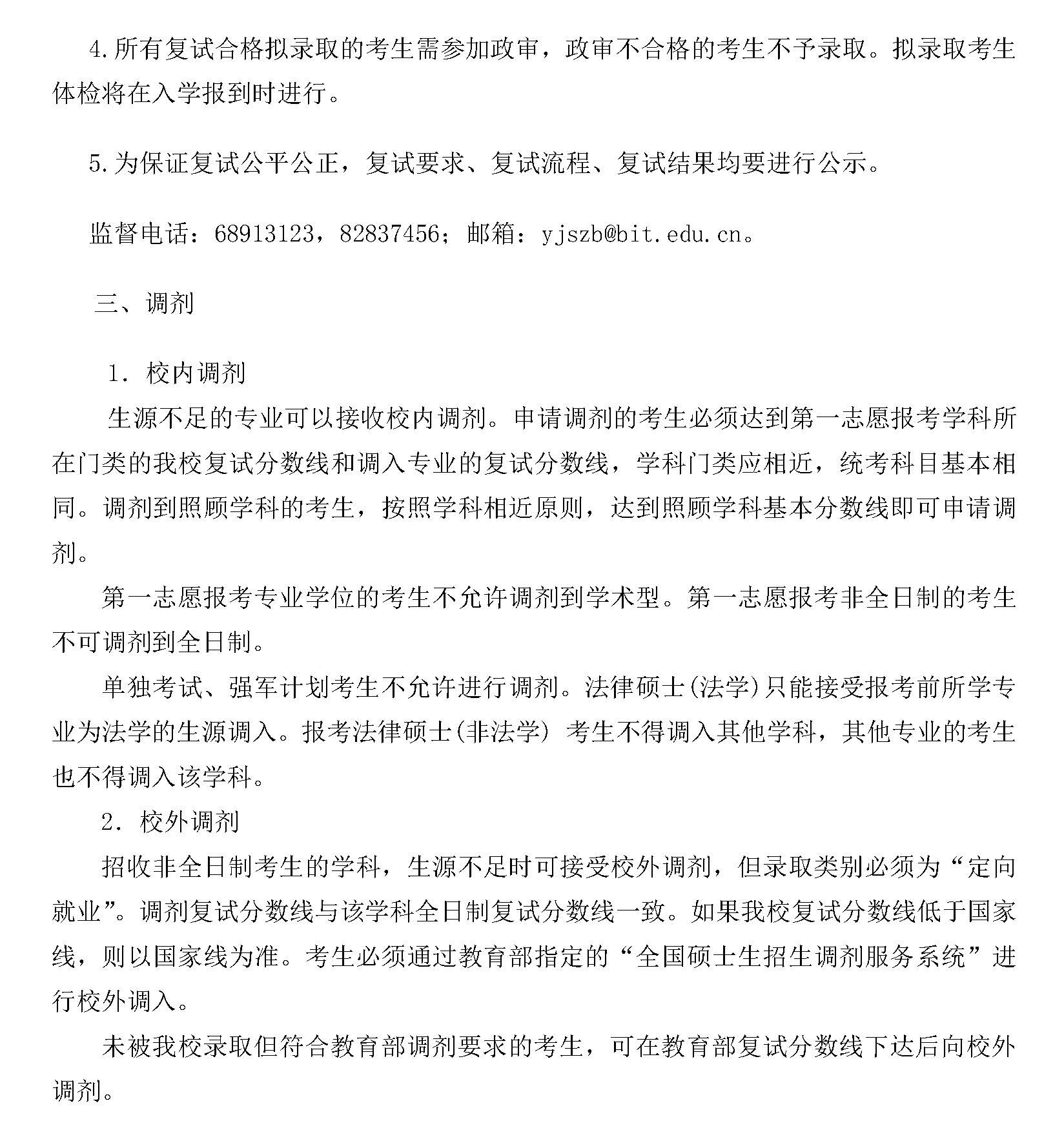 北京理工大學2017年碩士研究生招生考試復試分數線及工作有關安排