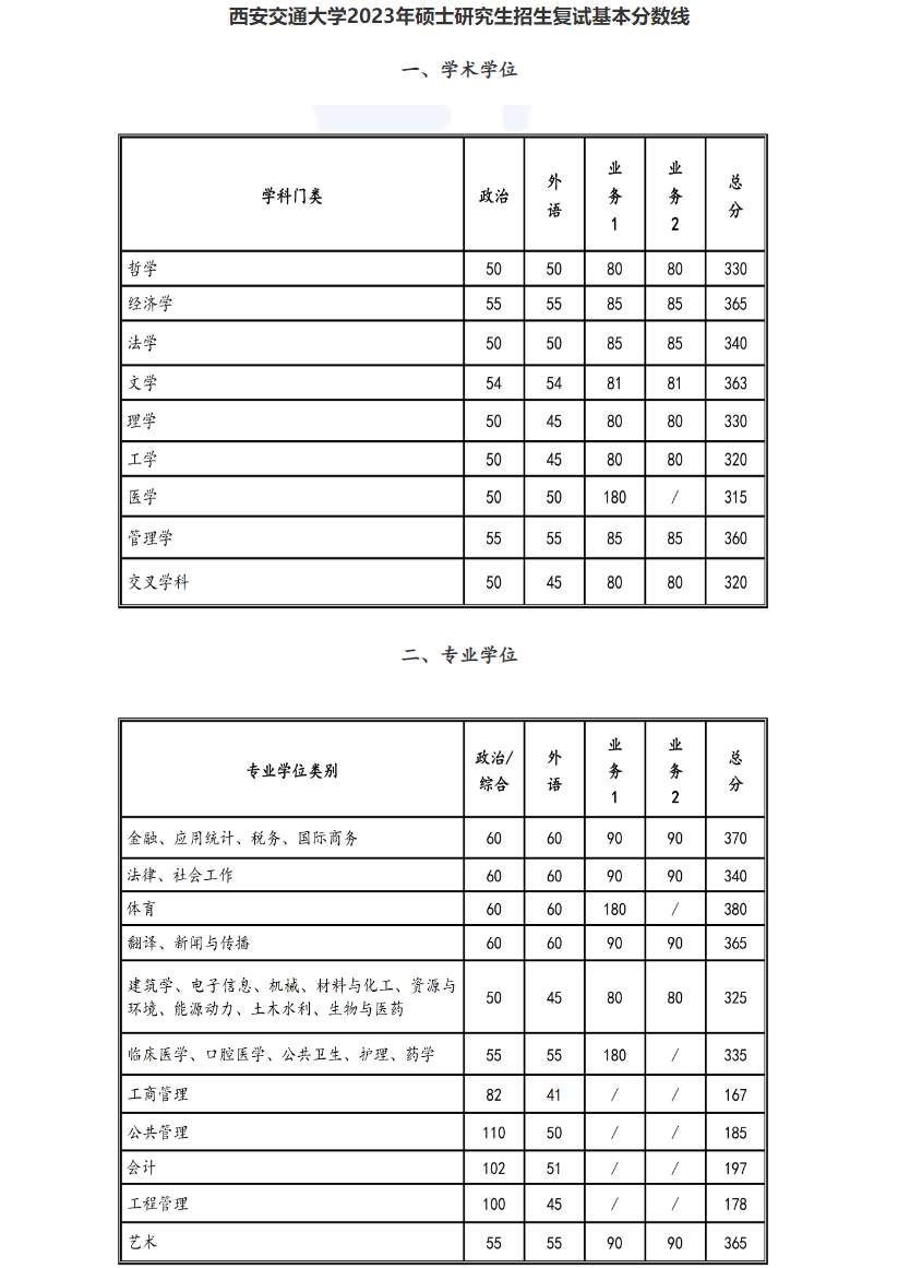 以上就是小編為大家整理“2023考研分數線:西安交通大學2023年碩士研究生招生復試基本分數線”的全部內容,想了解更多相關內容,請持續關注本網站。