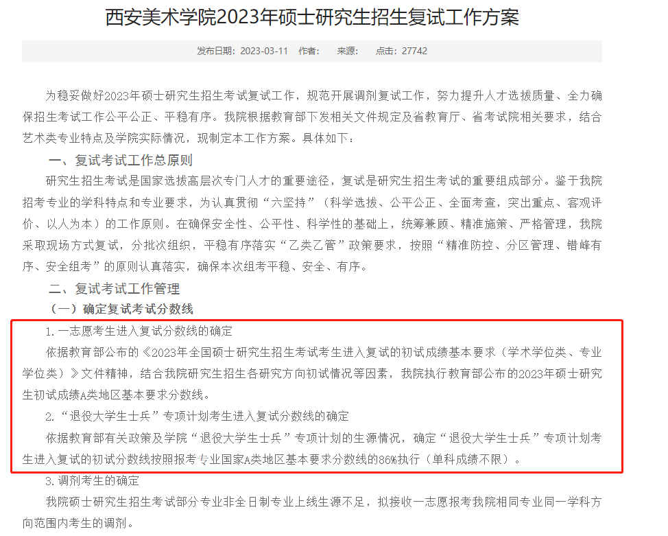 以上就是小編為大家整理“2023考研分數線:2023年西安美術學院碩士研究生招生考試復試分數線要求”的全部內容,想了解更多相關內容,請持續關注本網站。