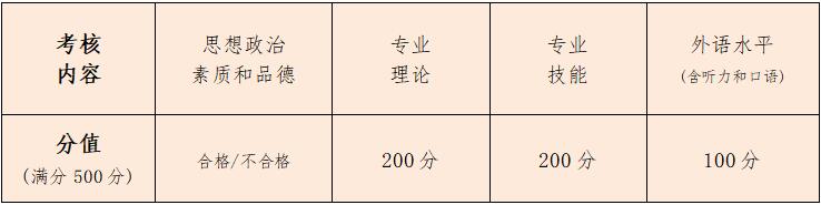 復試小組應集體研究、設置題目、形成題庫,需保證復試考生一人一題、隨機抽選。試題中需包含專業理論、專業技能和外語水平等相關考核內容。具體內容由各復試小組在保證公平性、科學性基礎上,依據專業特點和實際情況制定,復試考核內容分值如下表所示: