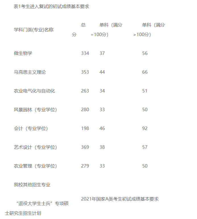 1.表1為考生進入我校復試的初試成績基本要求。同一專業,全日制和非全日制考生進入復試的最低控制線相同,復試要求完全相同。