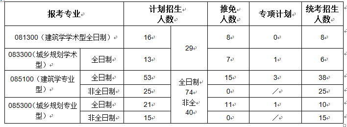 | 建筑學(全日制和非全日制)(085100) | 50 | 50 | 85 | 85 | 330 |