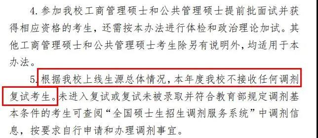 我校工商管理碩士專業(yè)高級管理人員工商管理碩士方向生源相對不足,可接受少量調(diào)劑生。有關(guān)調(diào)劑條件及申請程序參見學(xué)院網(wǎng)站相關(guān)公告。我校其他各學(xué)科專業(yè)均不接收校內(nèi)外調(diào)劑。