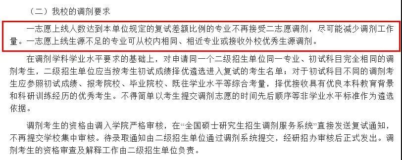 當(dāng)在一志愿考生滿足復(fù)試比例(一般為1:1.2或1:1.5)即一志愿生源充足的情況下不接受調(diào)劑。