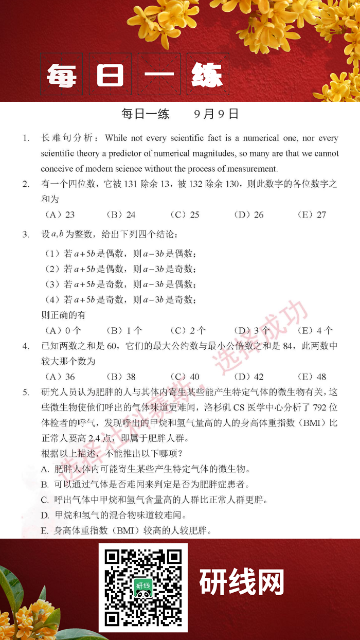 為了更好的復習和鞏固已經學過的知識,研線網小編為大家整理出幾道題,作為每日的練習,希望能夠幫助到同學們哦!