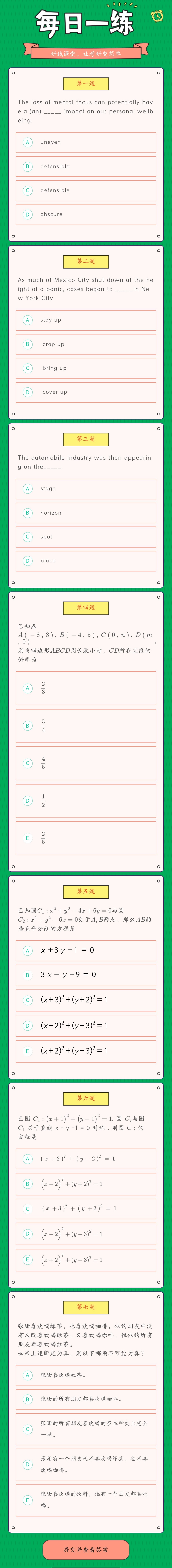 點(diǎn)擊進(jìn)入:研線課堂萬(wàn)題庫(kù),每日習(xí)題不重復(fù)。全面題型任你刷,真題解析隨便看。