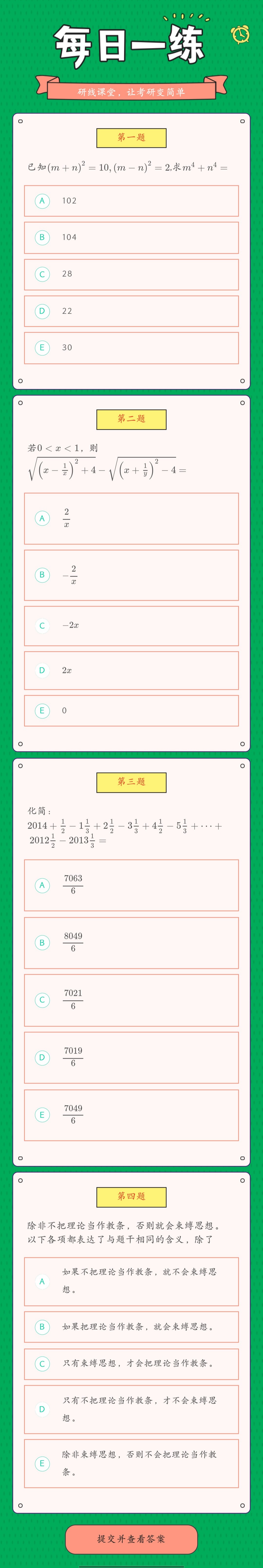 點擊進入:研線課堂萬題庫,每日習題不重復。全面題型任你刷,真題解析隨便看。