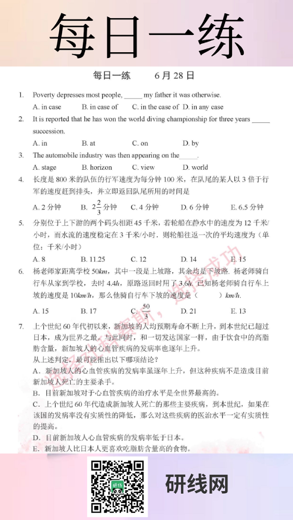為了更好的復習和鞏固已經學過的知識,研線網小編為大家整理出幾道題,作為每日的練習,希望能夠幫助到同學們哦!