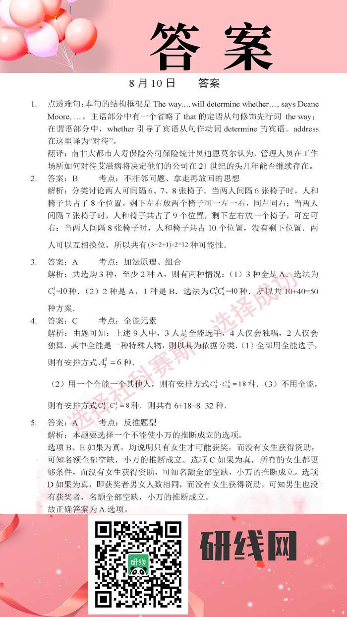 8月10日:2020考研管理類聯考每日一練以及答案