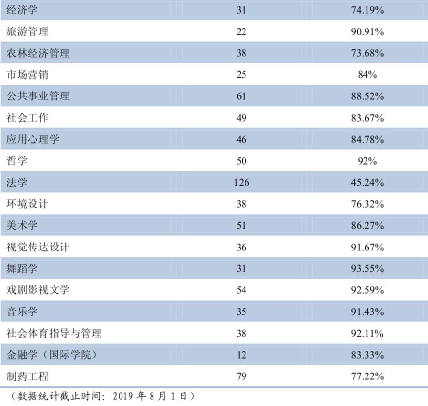 各學(xué)歷層次各專業(yè)就業(yè)率統(tǒng)計(jì)情況