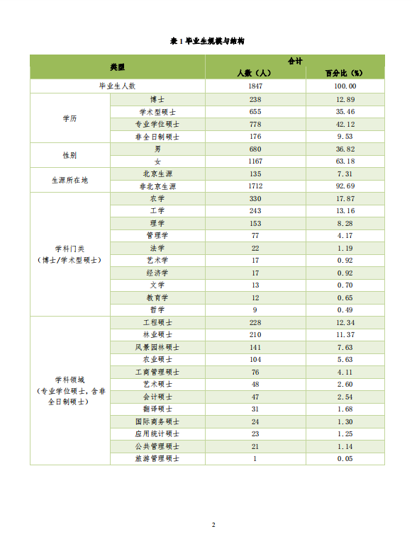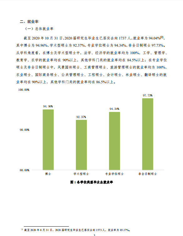 北京林業大學2020年研究生畢業生就業質量年度報告