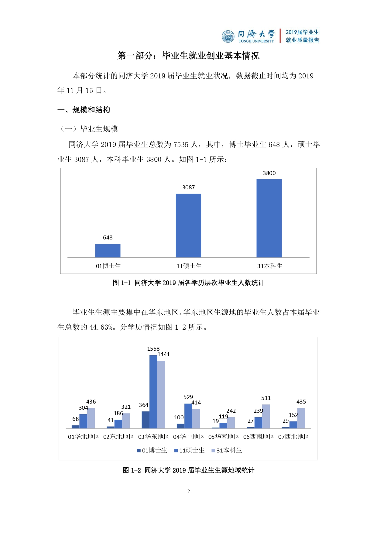 根據(jù)教育部、上海市教委統(tǒng)一工作部署,現(xiàn)公布《同濟大學2019屆畢業(yè)生就業(yè)質(zhì)量報告》,報告中2019屆畢業(yè)生就業(yè)數(shù)據(jù)統(tǒng)計截至2019年11月15日。