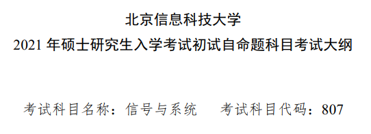 考試大綱不僅能給你一個復習的方向,還能幫助你梳理整個知識脈絡,方便記憶。今天,小編為大家整理了“2021考研大綱:北京信息科技大學信號與系統2021年碩士研究生入學考試初試自命題科目考試大綱參考書目”的相關內容,希望對大家有所幫助!