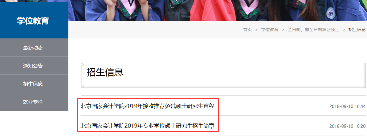 最后,在“招生信息”欄目中即可看到每年的“招生簡章”等信息。