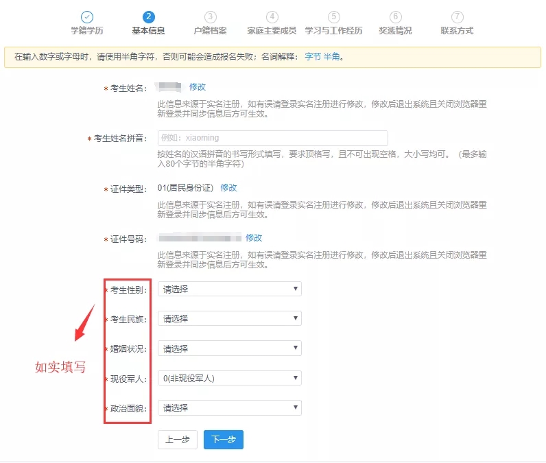 如果發生“學籍校驗未通過”的情況,就點擊“上一步”返回檢查,如果還未通過也不要緊,可以點擊“下一步”繼續填寫信息。
