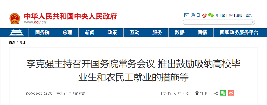 (原文鏈接:http://www.gov.cn/premier/2020-02/25/content_5483215.htm)